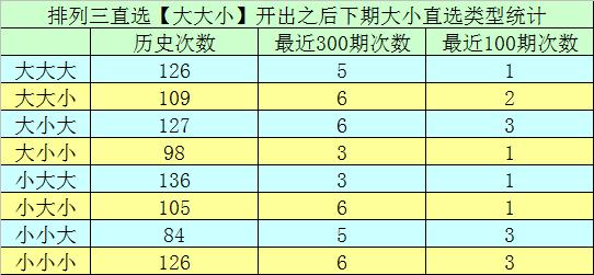 2.在前9次直选【大大小】组合之后,下期开奖号码分别为:432-094-124-016-918-980-939-583-276,组三包含1期,组六包含8期。本期奖号排除对子,看好开出组六。