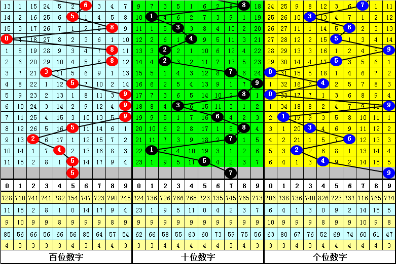 3.在以上9期奖号中,号码012路比分别开出1:1:1、2:1:0、0:2:1、2:1:0、1:1:1、2:0:1、3:0:0、1:0:2、1:1:1,012路出现个数比为13:7:7,本期预计开出012路比1:1:1。
