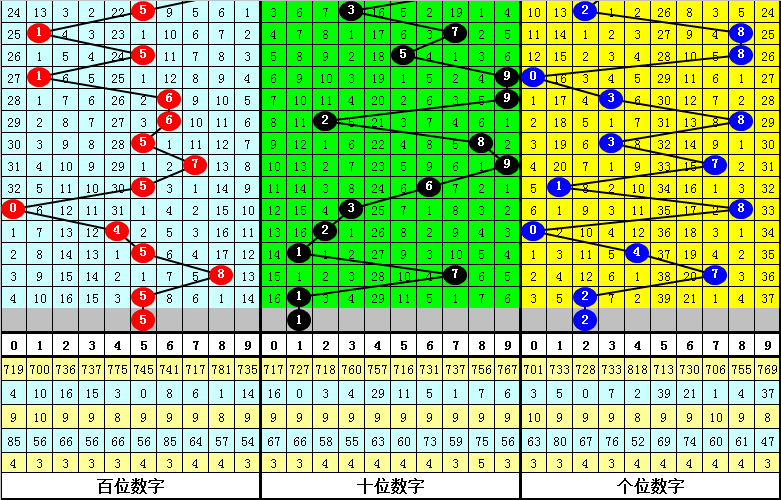 百位分析:该位上期开出号码5,最近10期该位012路比为3:2:5,其中2路号码连续开出3期,本期该位注意2路号码继续出现,关注号码5。