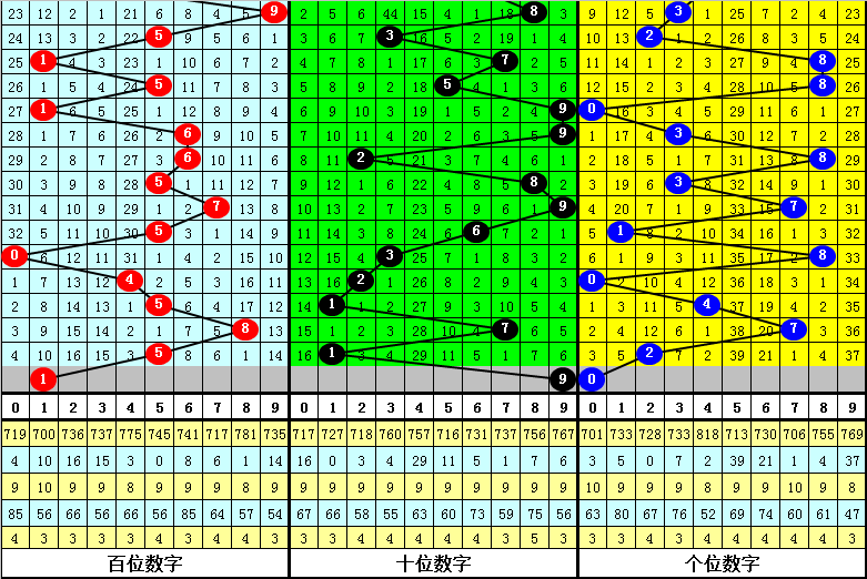 第一位推荐:最近30期该位0路号码开出8个,目前遗漏4期,其中号码3出现2次,目前遗漏15期;号码9出现2次,目前遗漏14期;号码6出现3次,目前遗漏8期;号码0出现1次,目前遗漏4期。