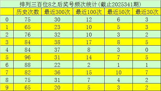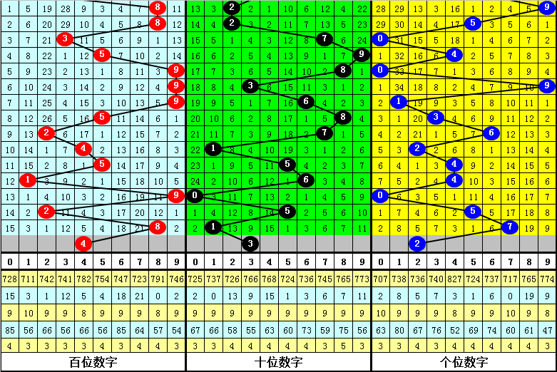 第一位杀号:上期第一位奖号为8,第一位奖号8历史上出现791次,前100次该位开出奖号8之后,下期号码0-9出现次数从高到底分别为:号码3→17次,7→15次,5→14次,0→12次,1、2→10次,4→8次,8→7次,9→5次,6→2次。