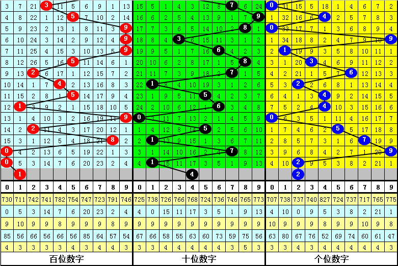 大小、奇偶分析:在连续40期奖号中,两大一小出现21期,当前遗漏1期、全大出现4期,当前遗漏20期、全小出现4期,当前遗漏0期、两小一大出现11期,当前遗漏4期,本期看好开出两小一大;两奇一偶有21次,目前遗漏1期、全奇有3次,目前遗漏11期、全偶有1次,目前遗漏29期、两偶一奇有25次,目前遗漏0次,本期预计出现全偶。