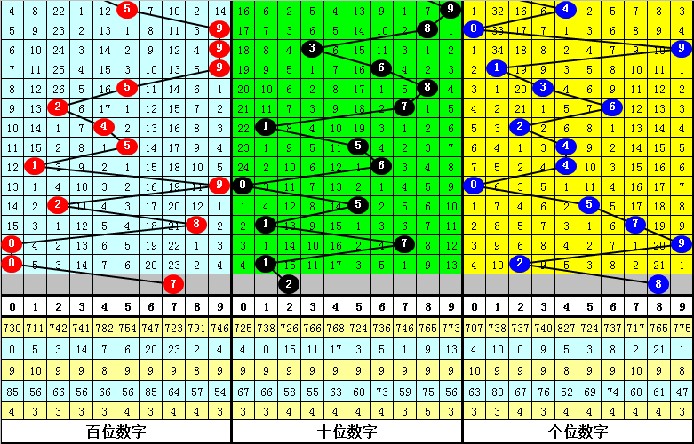 百位上期开出号码0,为偶数,奇数号近期开出相对较多,奇数号目前遗漏4期,本期适当关注奇数号再次出现,关注号码7。