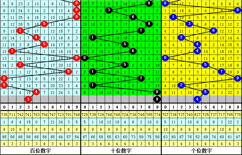 上期第二位奖号为:9,间隔13期之后开出,走势较温,前10期该位热码开出次数较少,本期注意该位热码逐渐回暖,关注号码9。