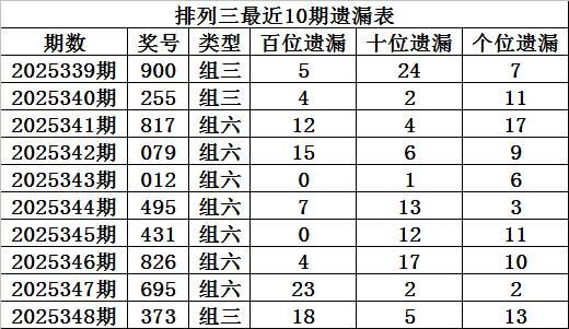 上期回顾:排列三第2025348期奖号:373,组三,直选遗漏总值为36期。