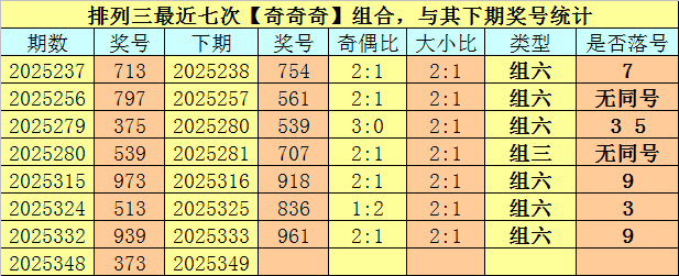 开奖回顾:排列三第2025348期开奖号码为:373。奖号类型为:组三,大小类型为:小大小,奇偶类型为:奇奇奇,无重号。