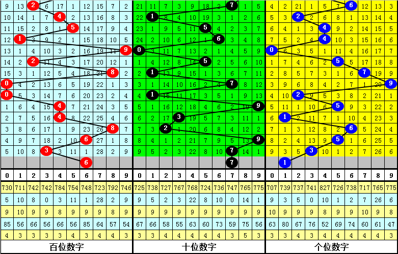 断档分析:上期奖号2路号码断档,0路号码表现较热。最近10期012路断档次数分别为2次、4次、4次,其中1路、2断档次数较多,0路断档次数较少,本期注意2路号码断档,防1路号码转热。