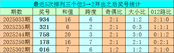 开奖回顾:第2025349期排列三开出奖号032,奖号组选类型为组六,012路比为2:0:1,大小比为0:3,奇偶比为1:2。