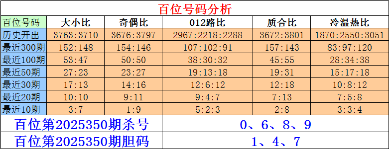 排列三百位第2025350期杀号:0、6、8、9
