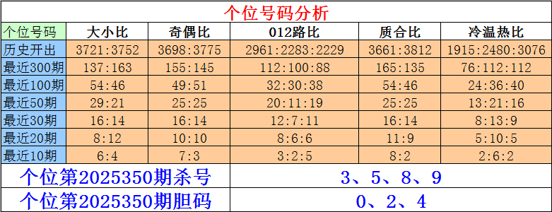 排列三个位第2025350期杀号:3、5、8、9