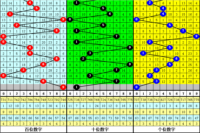 跨度分析:最近5期分别开出跨度:6、4、4、3、4,本期预计跨度走大,一码跨度参考9。