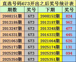 排列三直选673出现之后下期奖号分别为:824-962-477-445-626-131-094。