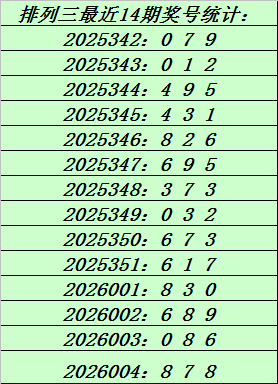 上期回顾:排列三第2026004期奖号:878。和值23,跨度1。