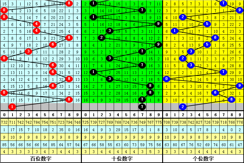 1.百位:最近9次大小总比例是5:4,奇偶总比例是3:6,012路总比例是3:3:3,本期预计百位开出号码0167,奇数1可以作为胆码。