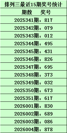 开奖回顾:排列三第2026004期开出奖号:878,其类型为:组三,直选形态为:偶奇偶、大大大、212路、热热冷、合质合。