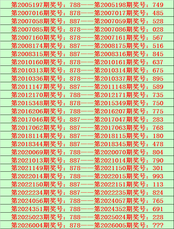 排列三第2026005期开奖日期:2026年1月5日,历史上第005期已开出了22次奖号,历年同期号码分别为:054、299、185、091、314、521、387、491、609、468、121、693、439、342、391、062、569、633、871、420、259、617。