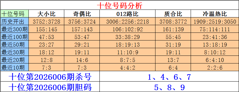 排列三个位第2026006期杀号:2、3、5、6