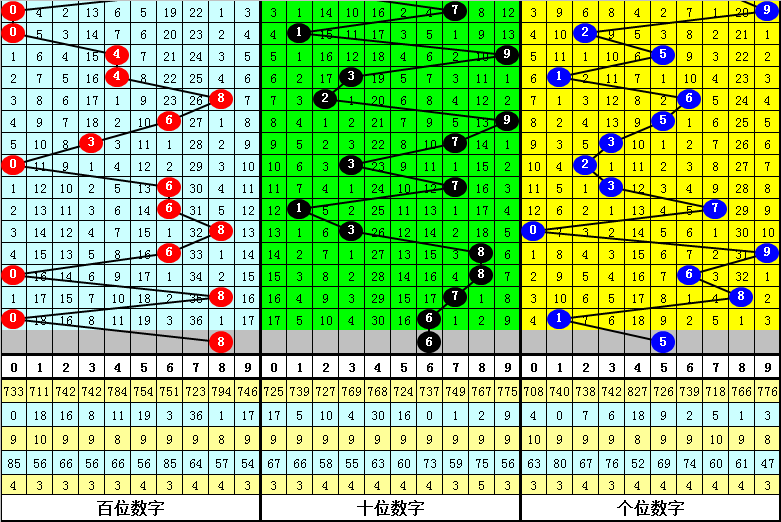 第一位杀号:上期第一位奖号为0,第一位奖号0历史上出现733次,前100次该位开出奖号0之后,下期号码0-9出现次数从高到底分别为:号码4、0、6→15次,3→11次,7→9次,1、2、8→8次,9→6次,5→5次。