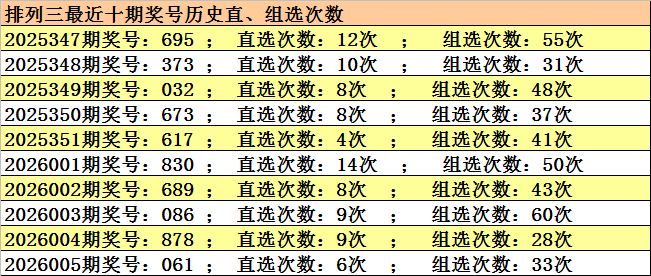 开奖回顾:排列三2026005期开奖:061,组六,和值7,跨度6,奇偶比1:2,大小比1:2。