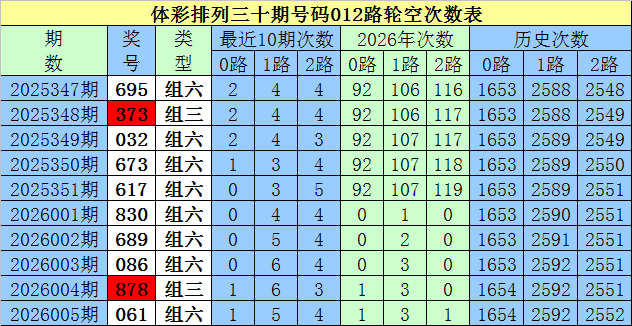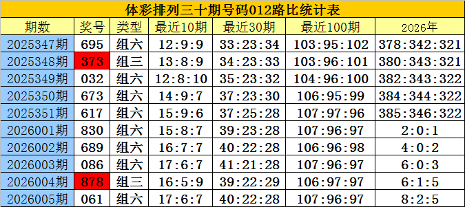 开奖回顾:排列三第2026005期奖号为:061,号码012路比为2:1:0。