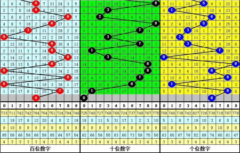 其中,百位奇偶比为4:4,大小比为4:4,本期百位一码参考4。