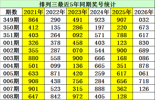 金心排列三第2026008期推荐: