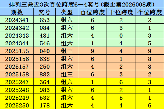 第2025247-第2025249期奖号:364、983、532,其下期奖号为:178,首位号码跨度为4;