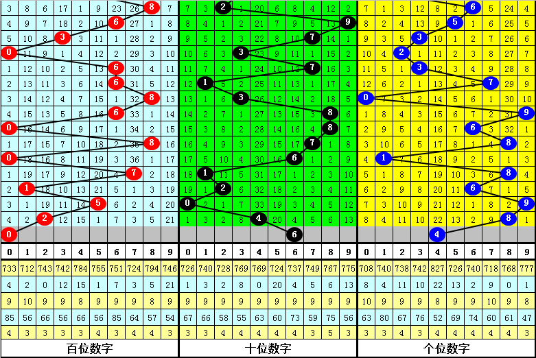二、在最近22期开奖中,奖号:6、8、0、1,开出期数最多,本期注意这四码中落号,关注号码0;遗漏期数最多的三码奖号为:3、7、1,当期开奖一般不会全部出现冷码。