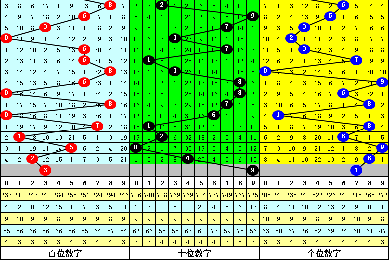 在前面5期奖号中,奇数落号个数分别为:1-2-1-2-0,偶数落号个数分别为:2-1-2-1-3,本期预计开出奇偶形态:全奇奖号。