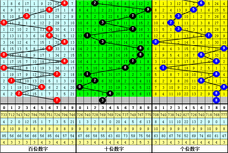 奇偶分析:历史上排列三第010期同期奖号中,奇偶比3:0出现1期,奇偶比0:3出现6期,奇偶比1:2出现7期,奇偶比2:1出现8期,奇偶奖号总比例开出26:40,奇数号码开出较少,今年第010期适当关注奇数号码回补,关注奇偶比2:1。