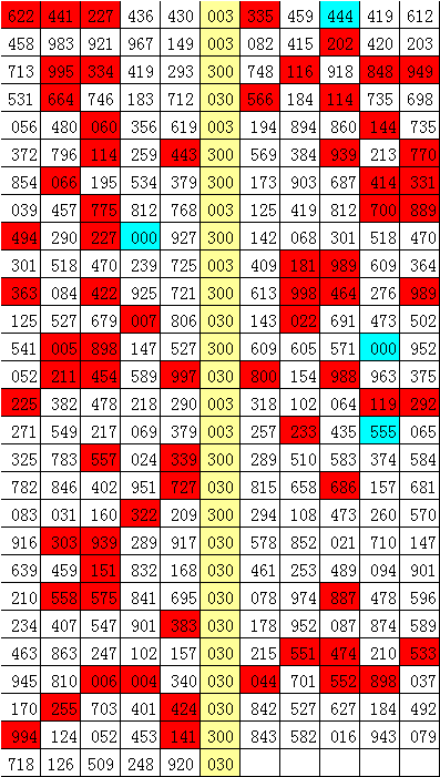 在以上统计表中,组选号码003开出之后,其下期组三号码出现4次,组六号码出现23次。其中,下期奖号有15期无重号,有12期开出重号,本期排除重号,看好开出组六号码。