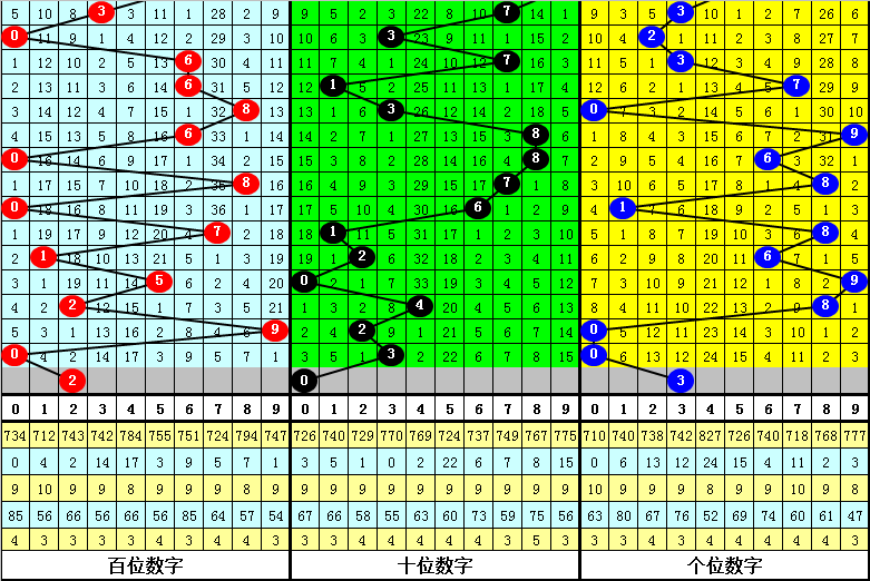 十个位合推荐:最近三期十个位合分别出现2-2-3,本期预计十个位合开出0路号,两码关注03。