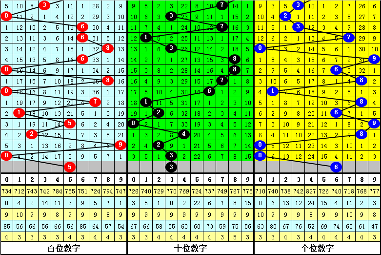 和尾推荐:排列三第012期历史同期,和尾奇偶比开出11:11,大小比开出13:9,012路比开出9:6:7,奖号和尾开出期数分别为:和尾 8→4期,和尾9→3期,和尾0、1、3、4、5、6、7→2期,和尾2→1期,本期适当关注偶和尾出现,参考和尾4。
