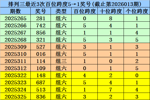 第2025309-第2025311期奖号:527、016、114,其下期奖号为:109,首位号码跨度为0;