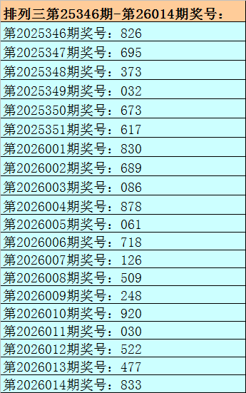 1.排列三最近十期分别开出号码:061-718-126-509-248-920-030-522-477-833,其中有4期奖号开出了上期的重复号码,本期预计第2026014期奖号:833中有重号,参考号码:3。