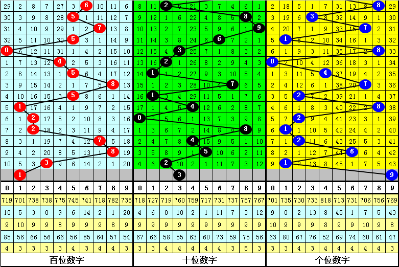 百十位差推荐:前三期百十位差分别开出3-3-1,本期预计百十位差走大,注意2出现。