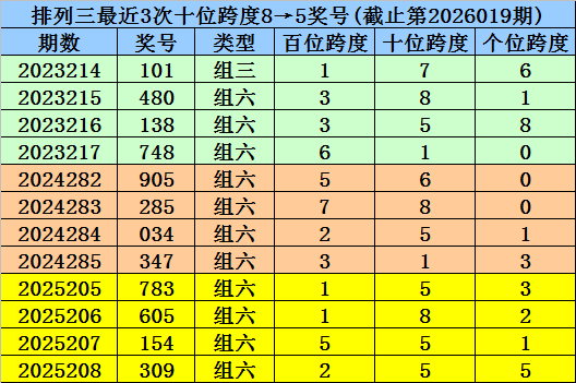 开奖回顾:第2026019期排列三奖号开出848,奖号奇偶比开出0:3,012路比开出0:1:2,跨度为4。