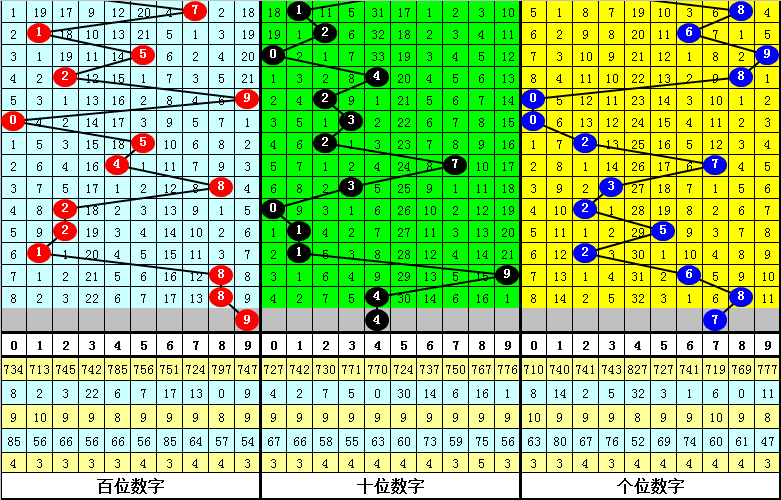 其中,号码0-9开出次数分别为:号码0开出2次、1开出4次、2开出4次、3开出4次、4开出4次、5开出1次、6开出1次、7开出6次、8开出3次、9开出1次。