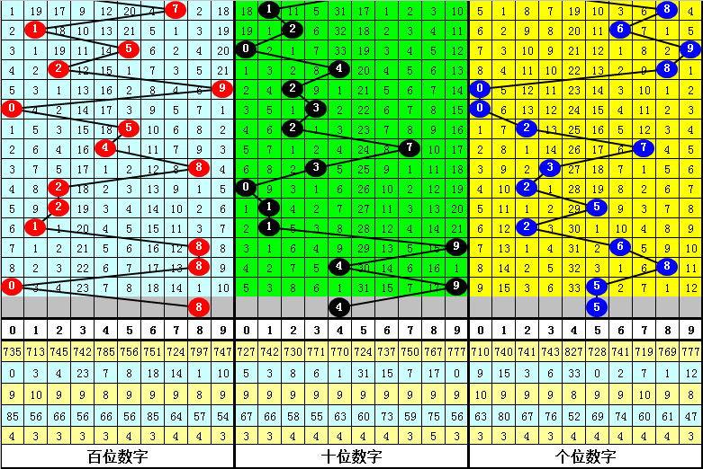 在最近9期开出奇偶分布:偶奇奇的奖号为:079-495-431-695-673-617-477-833-215,在下期出现号码分别为:012-431-826-373-617-830-833-202-112。其中百十个位号码分布情况如下: