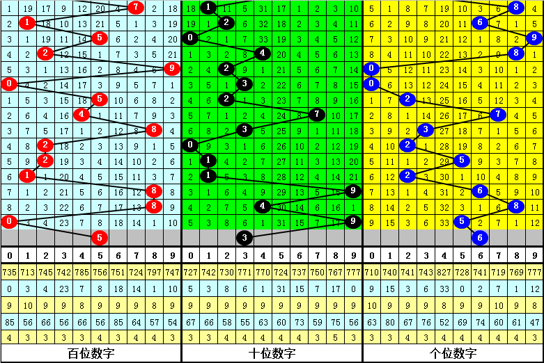 跨度分析:在排列三第021期历史同期中,奖号跨度012路比为4:9:9,奇偶比为11:11,大小比为14:8,跨度出现期数为:跨度7→5期,跨度8→4期,跨度4、5→3期,跨度2、3、6→2期,跨度1→1期,跨度0、9→0期,本期预计开出0路跨度,精选跨度3。