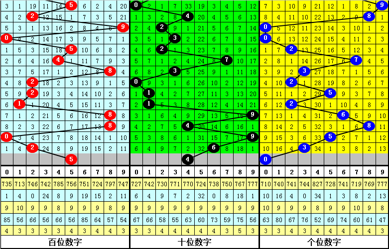 个位分析:上期开出号码3,近10期个位号码012路比为3:1:6,其中0路号码走冷2期之后出现,本期预计个位再出0路号码,一码关注0。