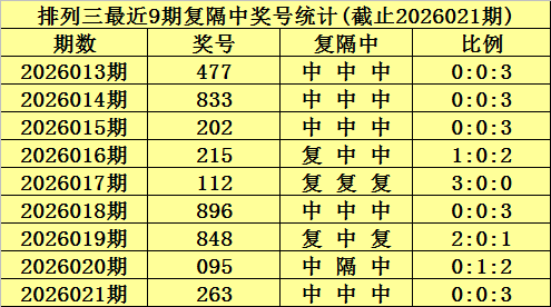 上期回顾:排列三第2026021期奖号为:263。大小比为1:2,奇偶比为1:2,012路比为2:0:1。