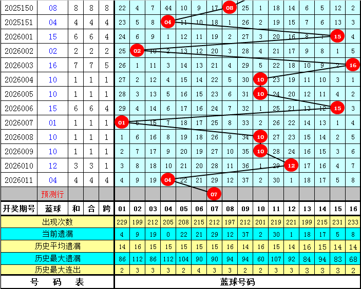 蓝球分析:上期蓝球开出号码04,下降8个点位,最近10期蓝球号码升平降分别为:降、升、降、平、升、降、升、平、升、降,本期防蓝球号码上升,一码蓝球关注07。
