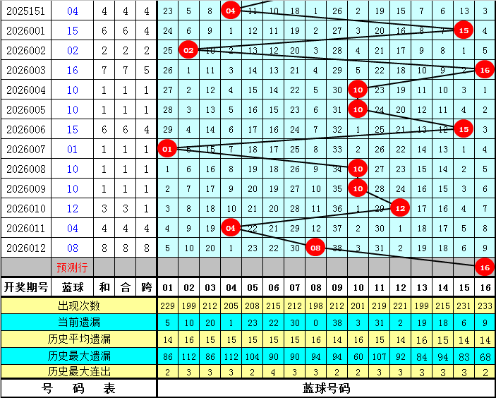 蓝球分析:最近7期蓝球号码012路比为2:4:1,奇偶比为2:5,大小比为4:3,本期重点关注大号蓝球出现,独蓝参考16。