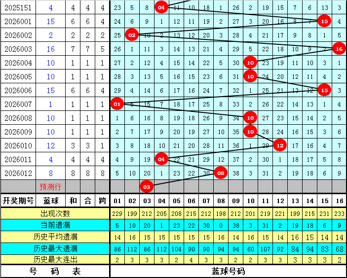 蓝球分析【一区01-04,二区05-08,三区09-12,四区13-16】:上期蓝球为08,出现在第二区,近50期区间比为12:11:17:10,近10期区间比为2:1:5:2,本期关注第一区蓝球号码,参考蓝球03。