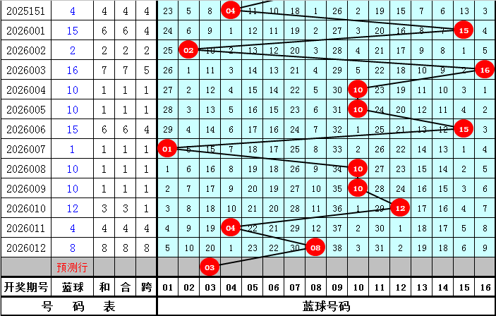 蓝球推荐:最近10期蓝球开出尾数:0出现4次,1、2、4、5、6、8出现1次,3、7、9出现0次,本期重点关注奇数蓝球出现,参考蓝球号码03。