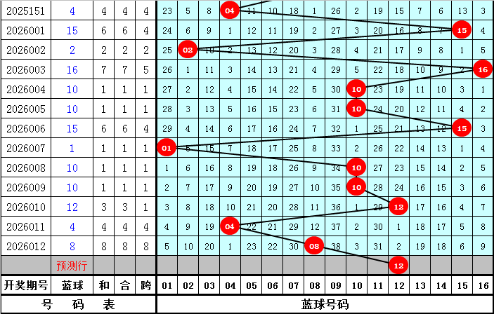 蓝球尾数分析:最近7周星期四开出5个蓝球尾数,重复蓝球尾数明显活跃,本周星期四注意蓝球尾数为近期热码尾数,参考蓝球12。