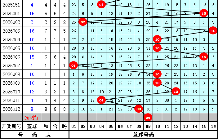 蓝球号码分析:最近30期蓝球号码质合比为7:23,最近10期蓝球质合比为1:9,最近5期蓝球分别为:10、10、12、04、08,本期蓝球关注合数号码,参考蓝球号码09。