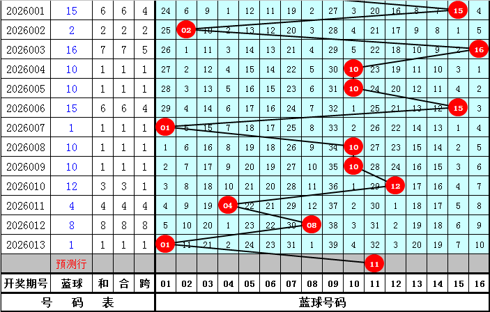 在历史同期第014期开奖中:蓝球号码012路比为6:8:9,本期注意蓝球开出2路号码,精选蓝球号码11。
