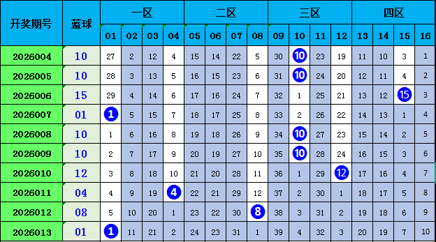 上期开出3个1路红球,本期关注1路红球转热,精选一注推荐4个号码01、10、16、19。